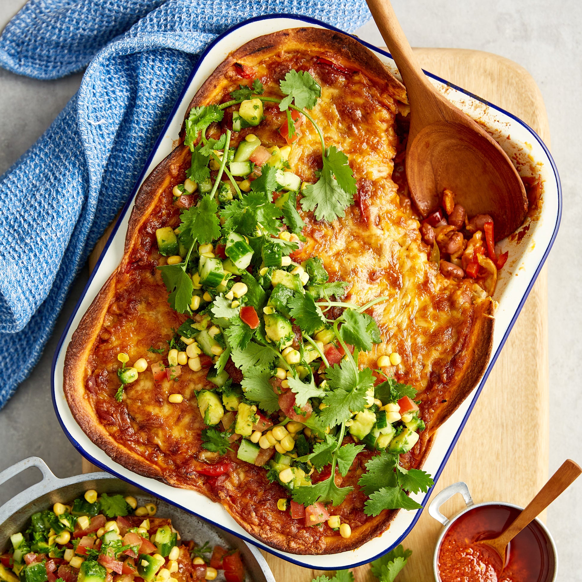 Mexican Tortilla Bake - with Avocado Corn Salsa