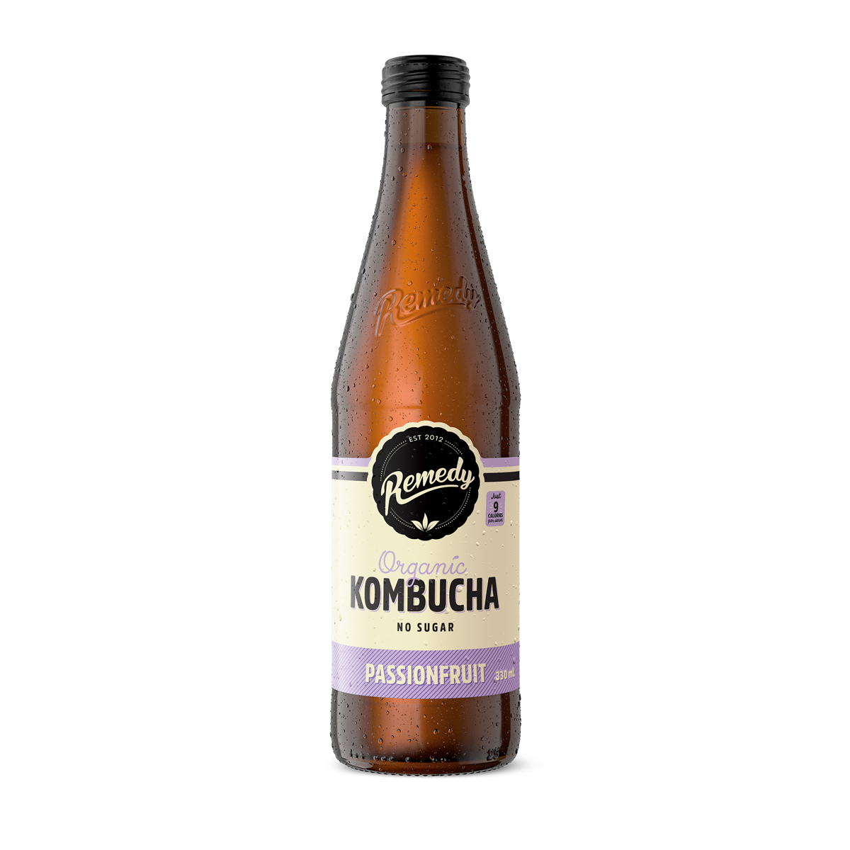 Remedy Organic Kombucha Passionfruit 330ml: Enjoy a refreshing burst of tropical flavor with our organic kombucha. Packed with probiotics for gut health and antioxidants for a natural energy boost. Try it today for a delicious and revitalizing experience!