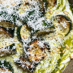A great veggie side dish to any meal. This pesto is made using cashew nuts, a nice alternative to the traditional pine nuts normally used to make a basil pesto. Cashew nuts once soaked are just as creamy and just great to use in pesto dips. This recipe makes one large jar - so you can use it over a few days. Store in the fridge.