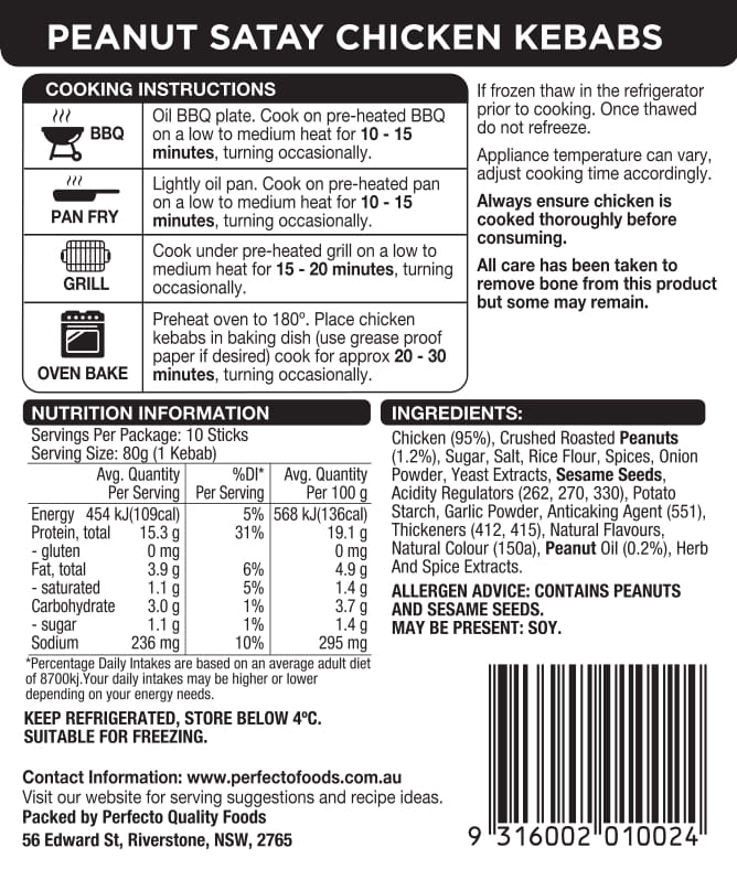Perfecto Peanut Satay Chicken Kebabs 400g