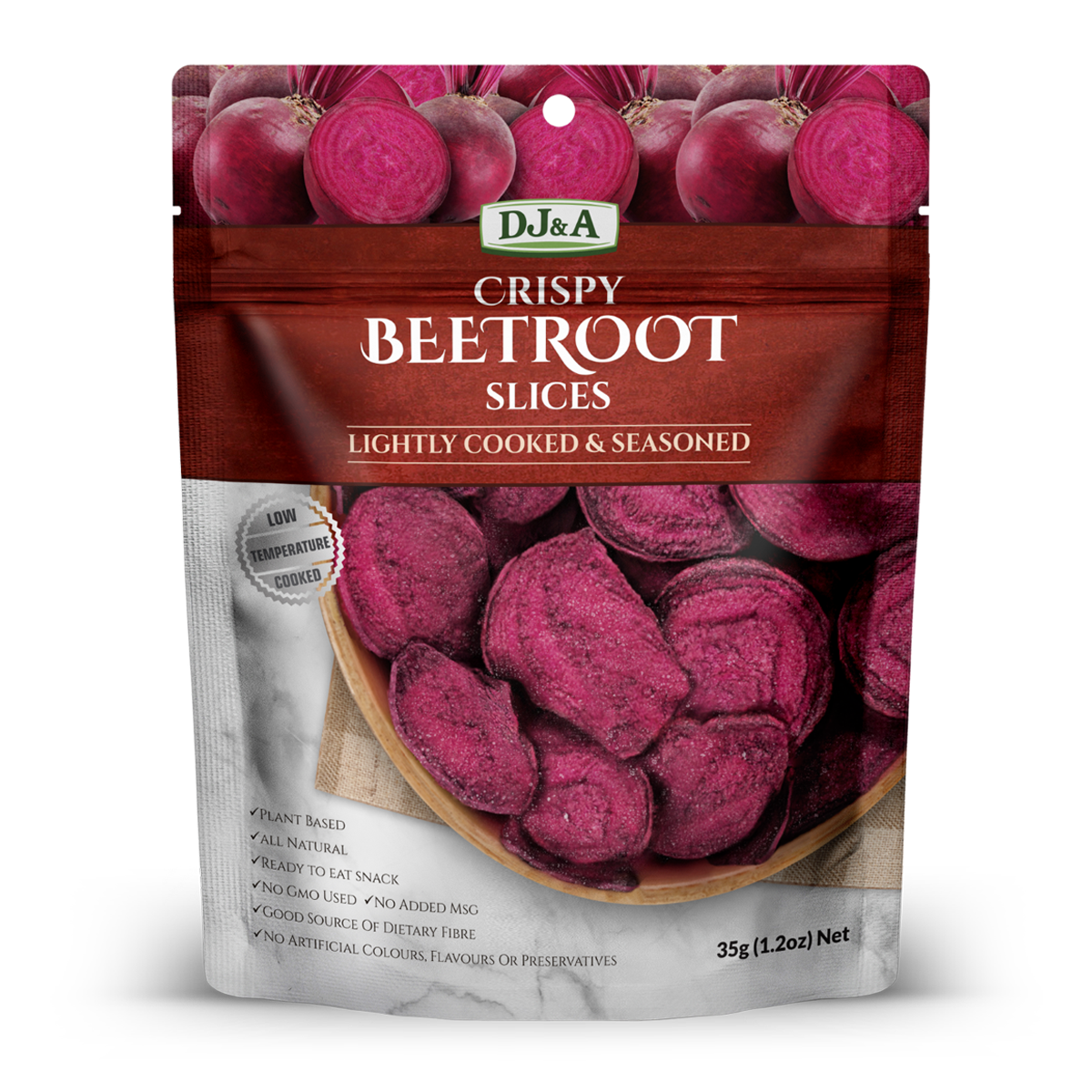 Enjoy a guilt-free snack with DJ&A Crispy Beetroot Slices 35g. Packed with antioxidants and nutrients, these crispy slices are a delicious way to boost your health. Perfect for on-the-go snacking or adding a flavorful crunch to your meals. Try them now for a tasty treat that's good for you!