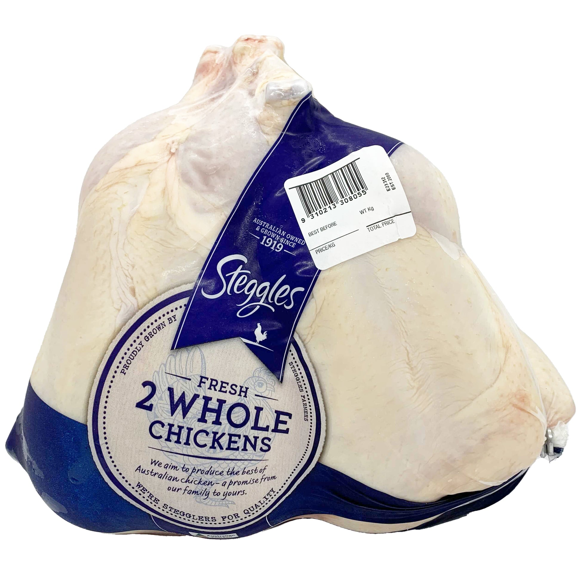 Steggles Chicken Twin Pack 1.8kg: Enjoy the convenience of two tender and juicy whole chickens in one pack. Perfect for family meals and gatherings. Order now for a delicious and hassle-free cooking experience.
