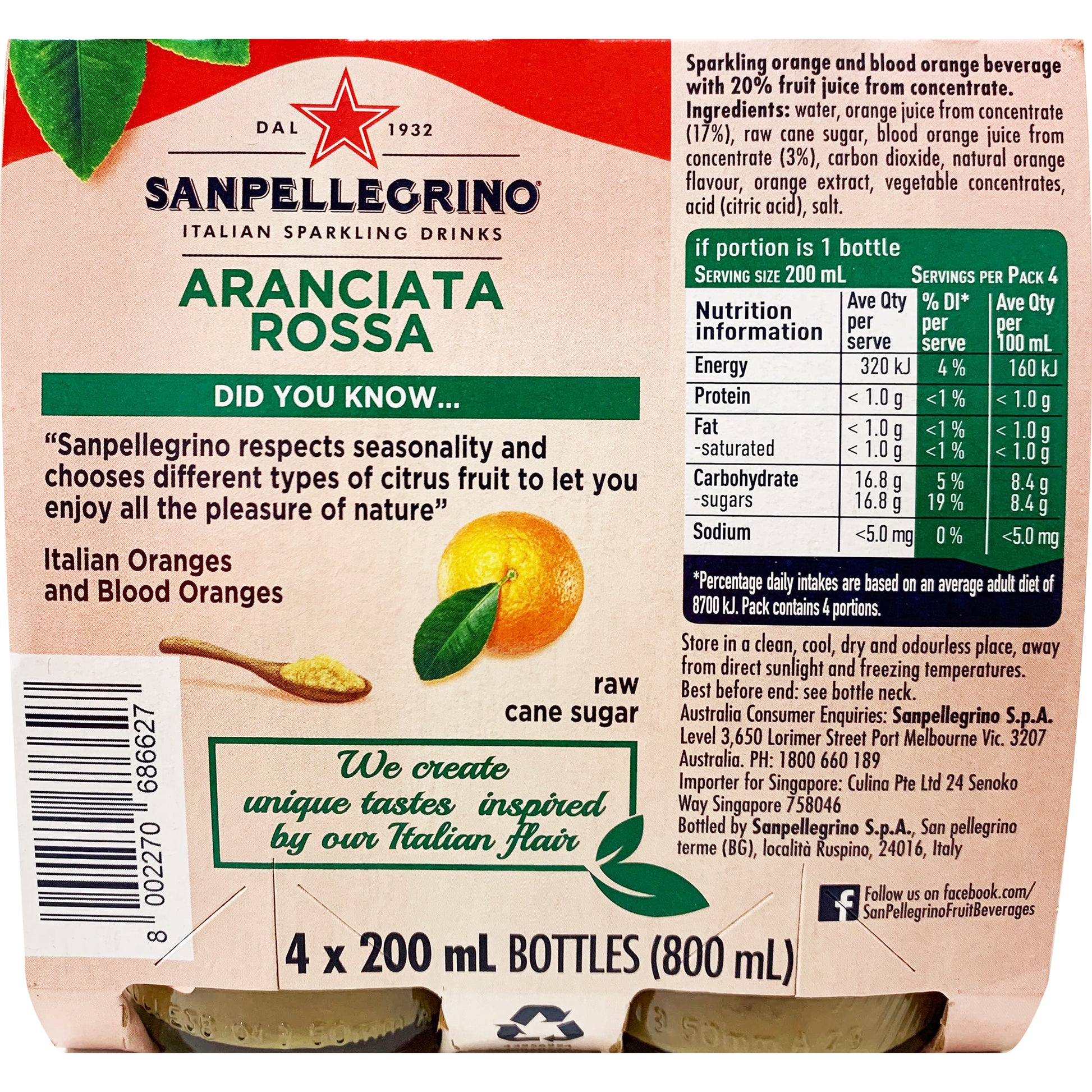 San Pellegrino Aranciata Rossa 4 x 200ml is a refreshing and vibrant sparkling beverage that combines the bold flavor of blood orange with the crispness of San Pellegrino's signature sparkling water. Perfect for on-the-go enjoyment, this pack of four 200ml bottles is a convenient way to indulge in a burst of citrusy goodness anytime, anywhere. Elevate your hydration experience with San Pellegrino Aranciata Rossa today.
