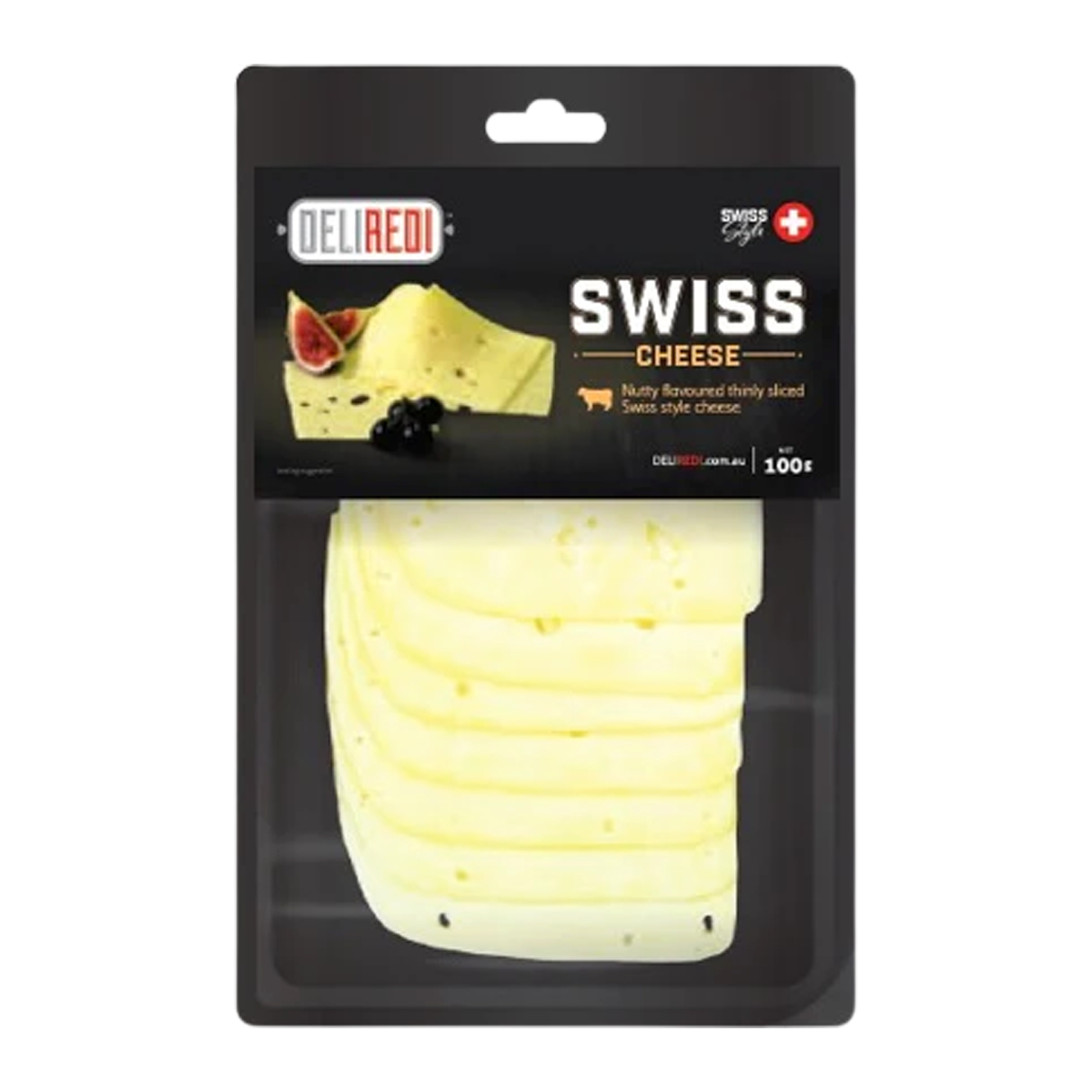 Deliredi Swiss Cheese Slices 100g: Indulge in rich, creamy flavor with our premium Swiss cheese slices. Perfect for sandwiches, burgers, and snacks. Elevate your meals with the finest quality cheese. Order now for a deliciously satisfying experience.