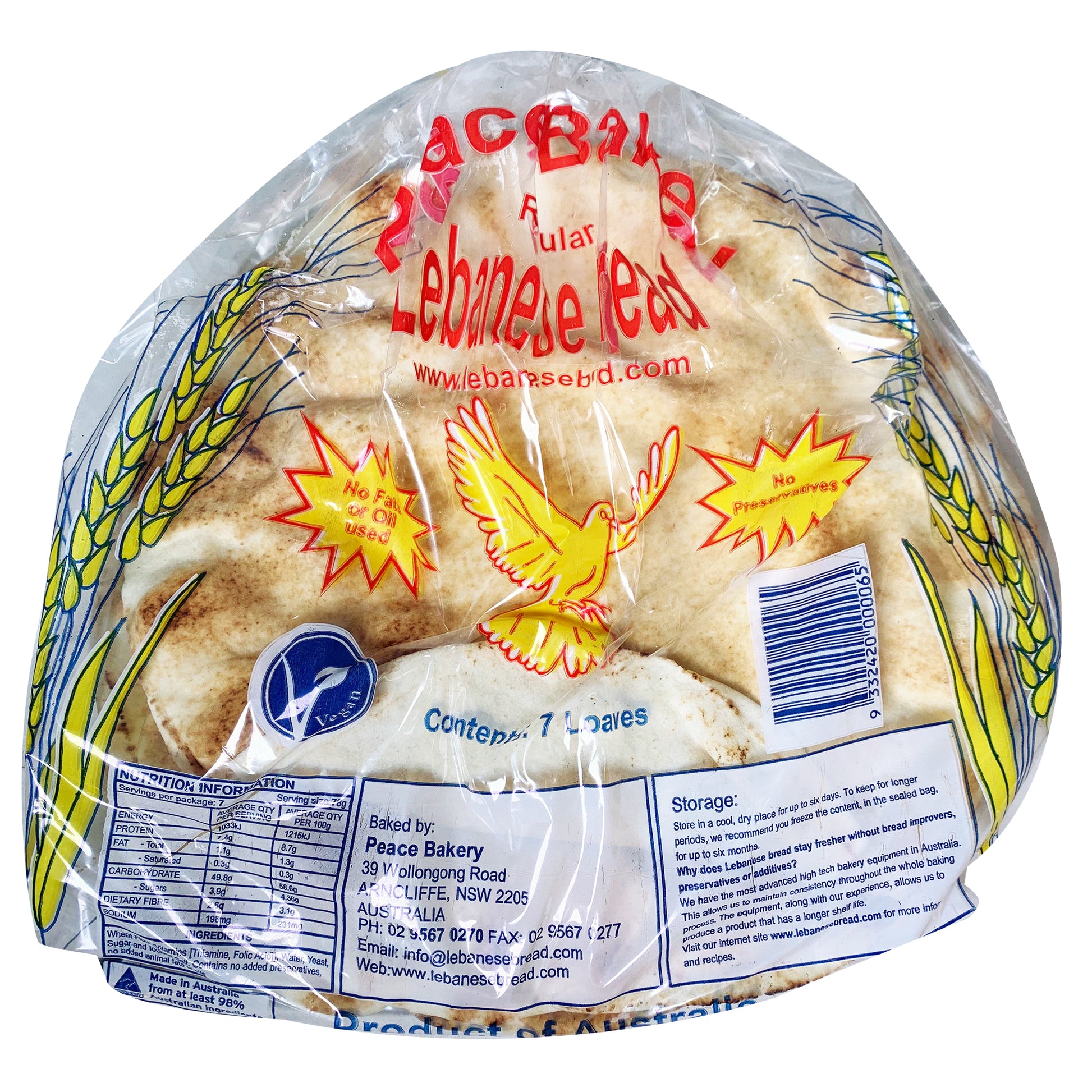 Freshly baked Peace Bakery Lebanese Bread x7 - a taste of Lebanon delivered to your doorstep. Enjoy the authentic flavors and soft texture of traditional Lebanese bread, perfect for wrapping your favorite fillings or dipping into hummus. Elevate your meals with our versatile and delicious bread, made with care and quality ingredients. Order now and experience the convenience and delight of Peace Bakery Lebanese Bread x7.