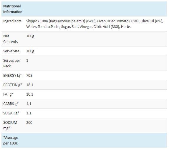 Safcol Tuna Pieces Oven Dried Tomato and Herbs in Olive Oil 100g