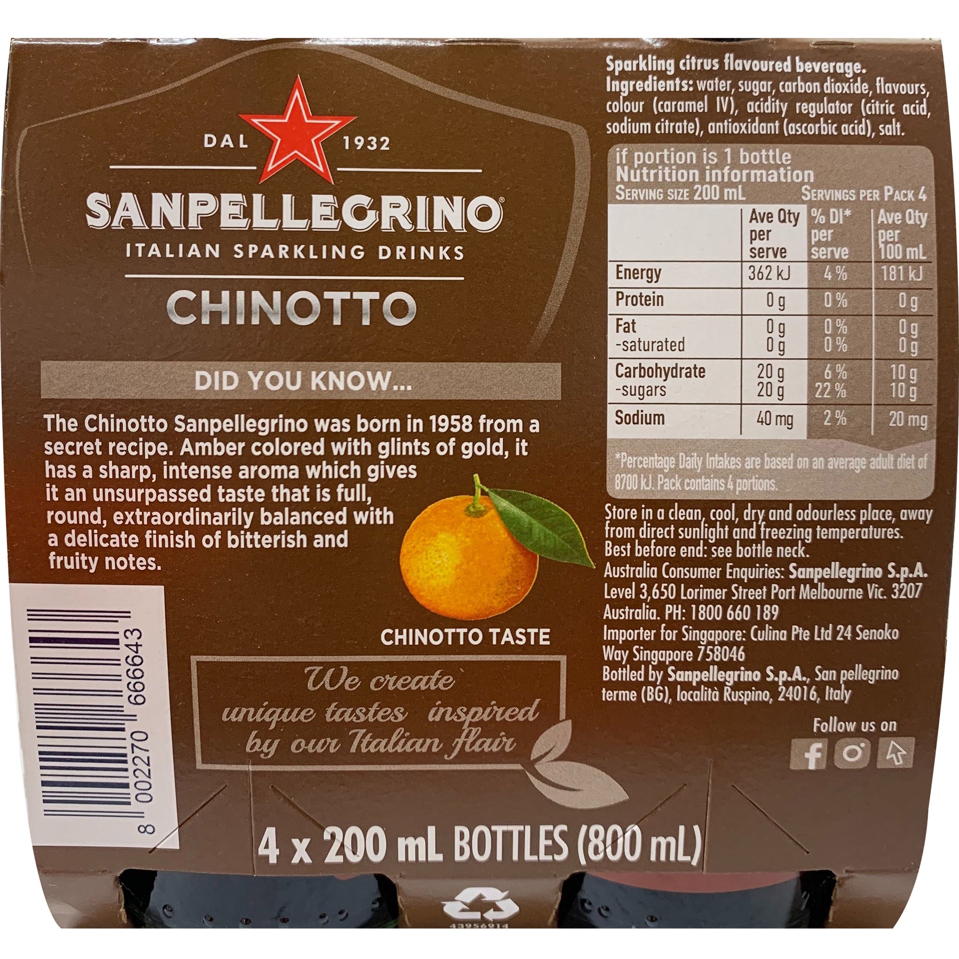 San Pellegrino Chinotto 4 x 200ml offers a refreshing and unique citrus flavor experience. Indulge in the bold taste of Italian Chinotto oranges, perfectly carbonated for a satisfying fizz. Elevate your beverage selection with this premium and convenient pack of four.