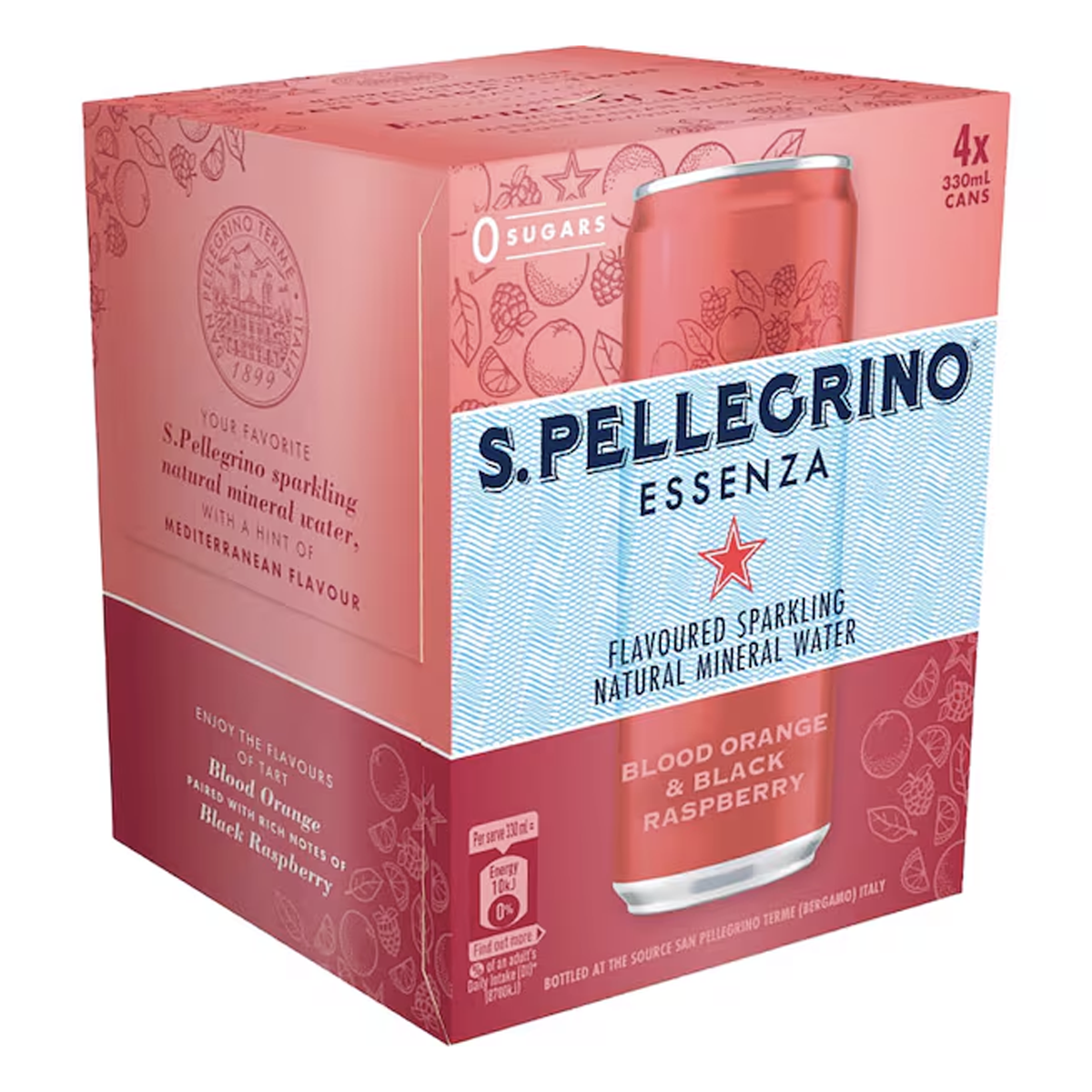 San Pellegrino Essenza Blood Orange and Black Raspberry Can 4x330ml