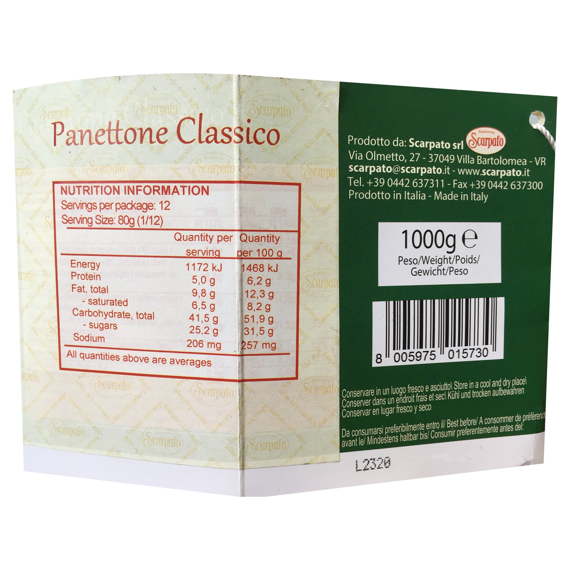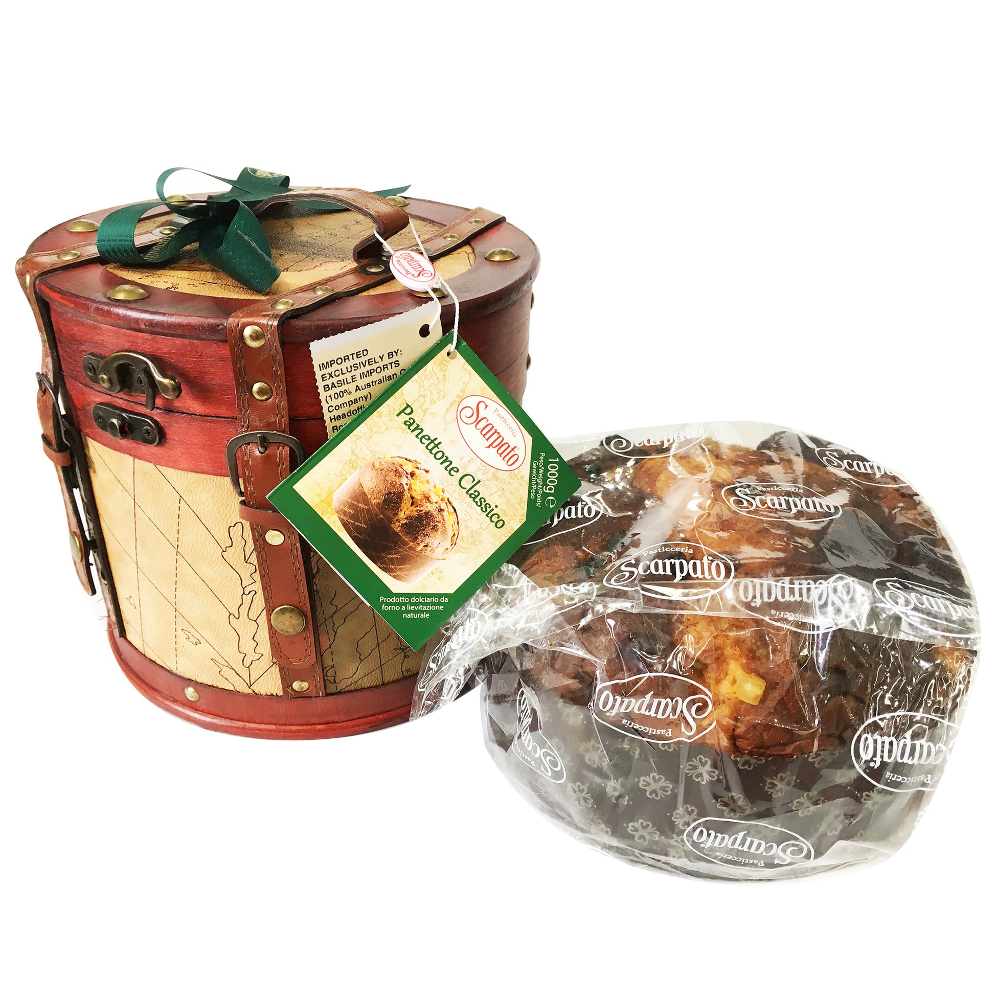 Indulge in the rich tradition of Italian holiday baking with Scarpato Panettone Classico. This 1kg masterpiece comes in an elegant antique box with a buckle, making it a perfect gift or centerpiece for your festive table. Enjoy the authentic taste of Italy with every bite of this classic panettone.