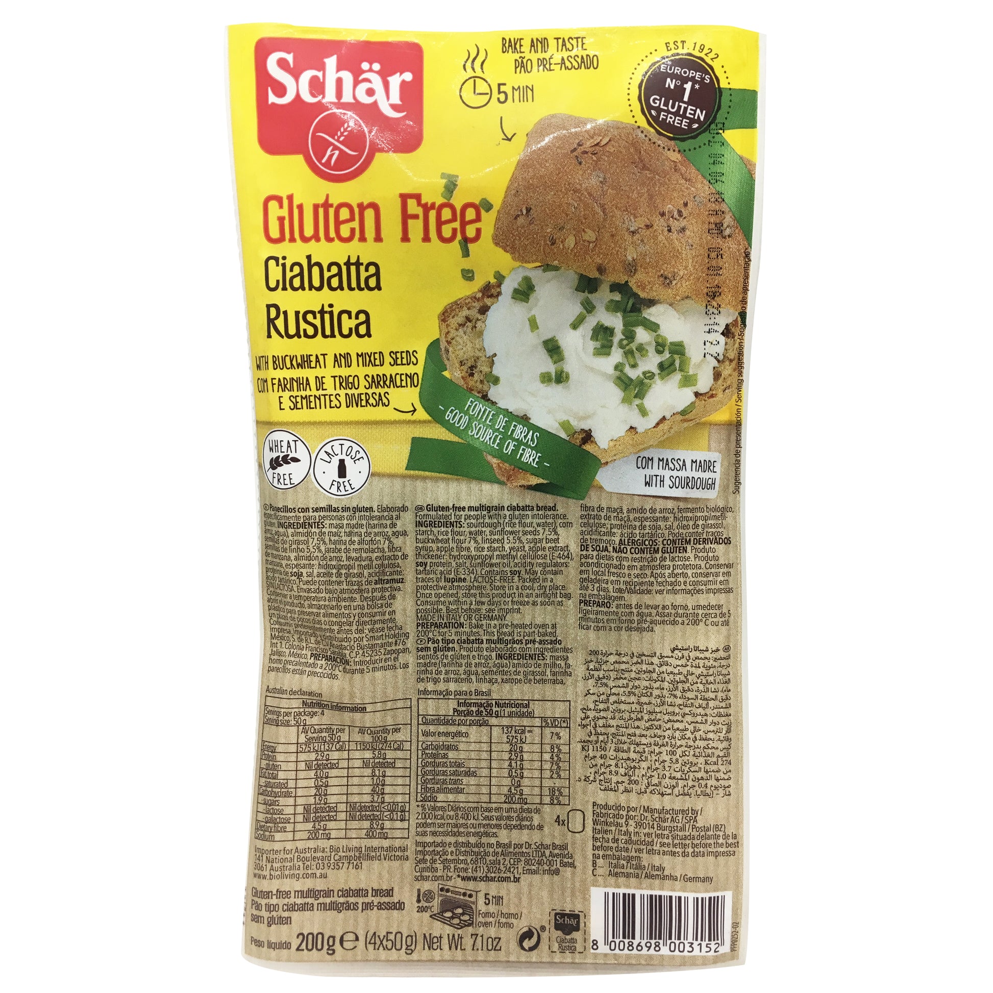 Schar Bread Ciabatta Rusti - Gluten Free is a delicious and convenient option for those with gluten sensitivities. Each pack contains 4 pieces of 200g ciabatta bread, perfect for sandwiches or to accompany your favorite meals. Enjoy the authentic taste and texture of ciabatta bread without the gluten, making it a great choice for those with dietary restrictions.