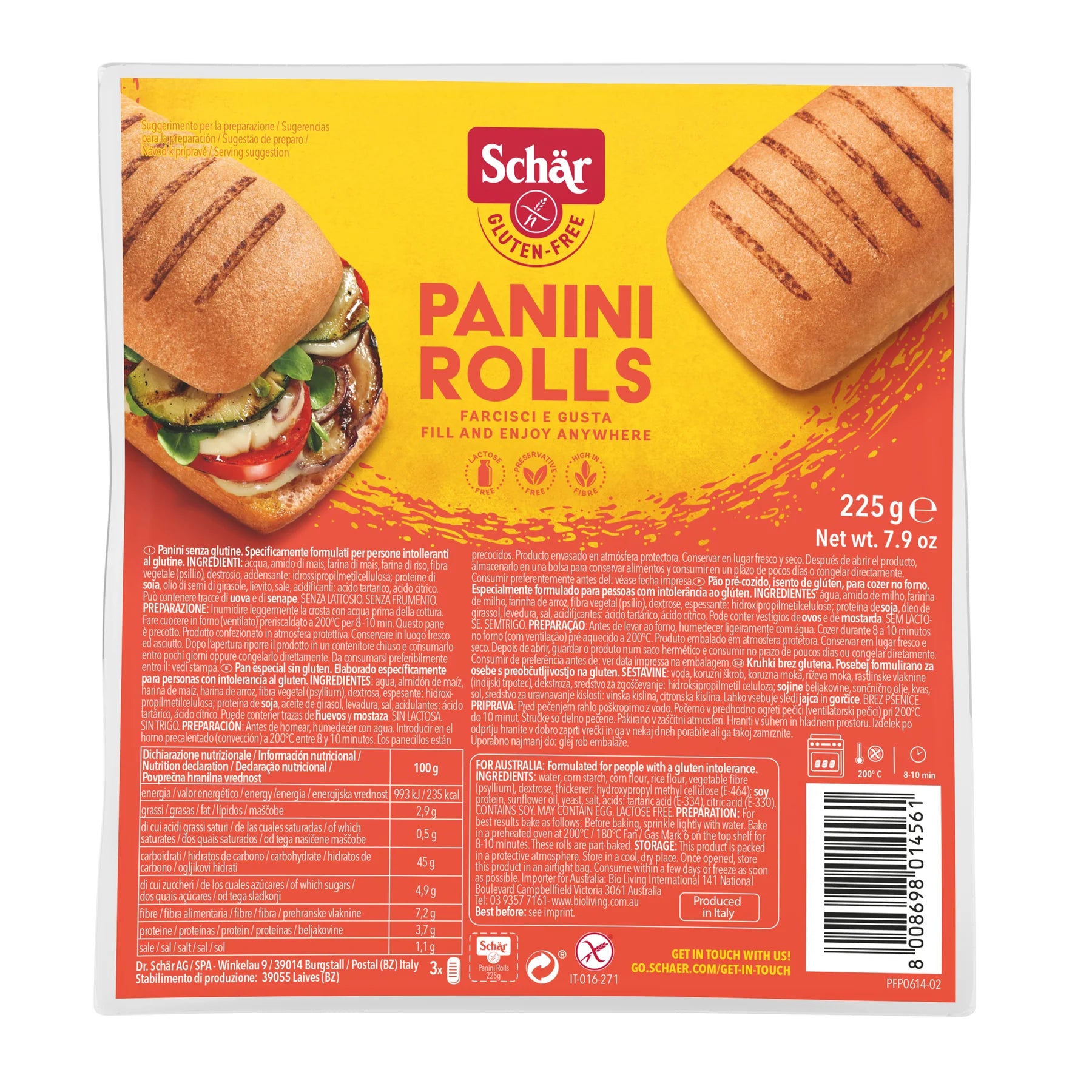 Schar Gluten Free Panini Rolls 225g: Deliciously soft and gluten-free, perfect for satisfying your cravings without the gluten. Enjoy the convenience of quick and easy meals with these versatile panini rolls. Ideal for anyone looking for a tasty gluten-free option that doesn't compromise on flavor or texture.