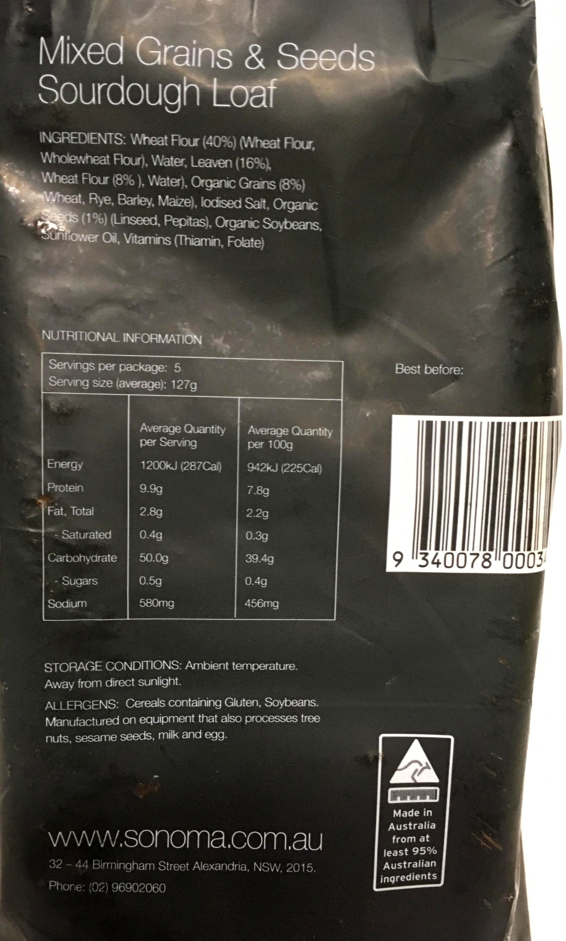 Sonoma - Bread Mixed Grains & Seeds - Sourdough Sliced (635g)