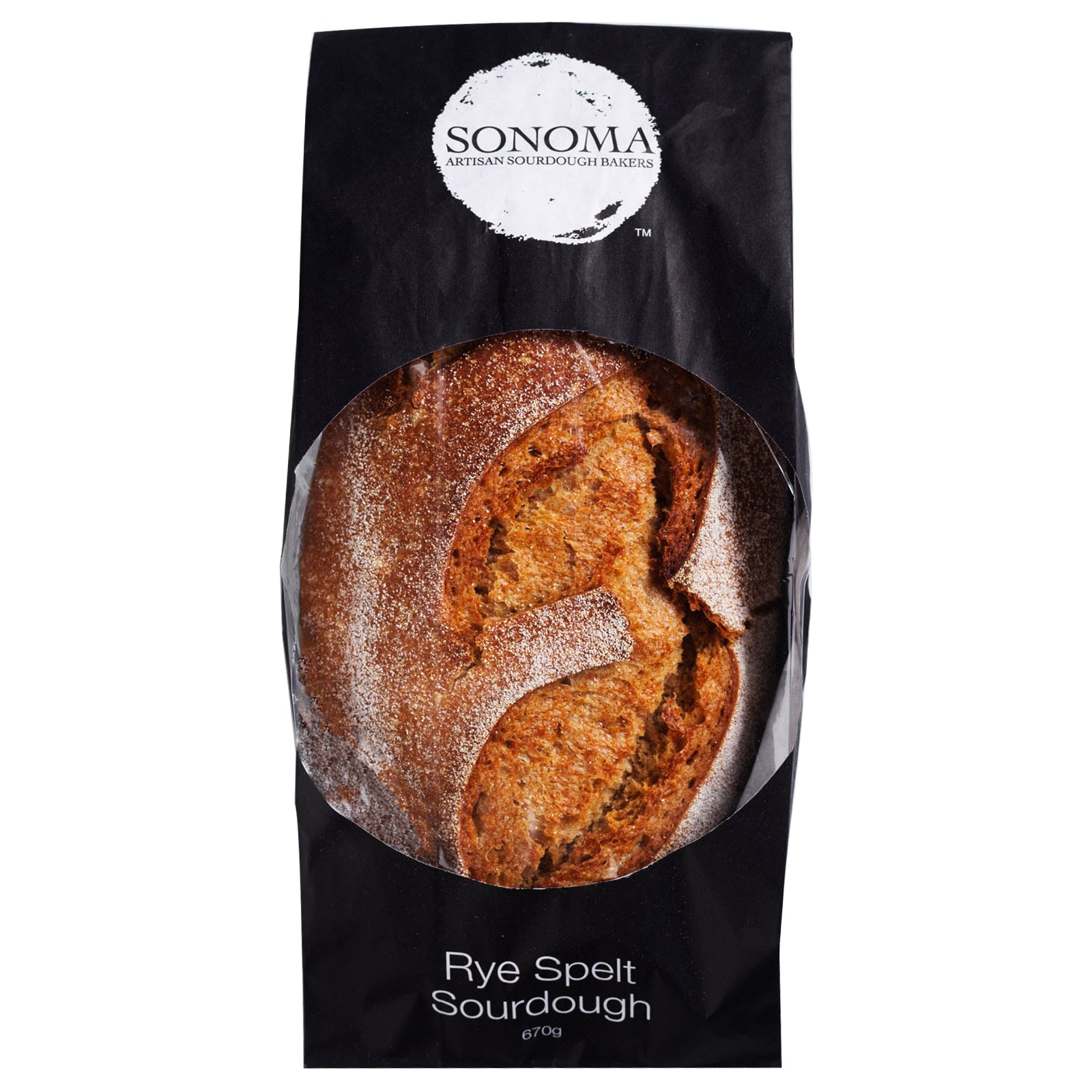 Sonoma Rye Spelt Sourdough 680g: Enjoy the perfect blend of hearty rye and nutritious spelt in every bite of our artisan sourdough bread. Handcrafted with care, this flavorful loaf is a wholesome choice for your daily bread needs. Order now for a delicious and satisfying bread experience!