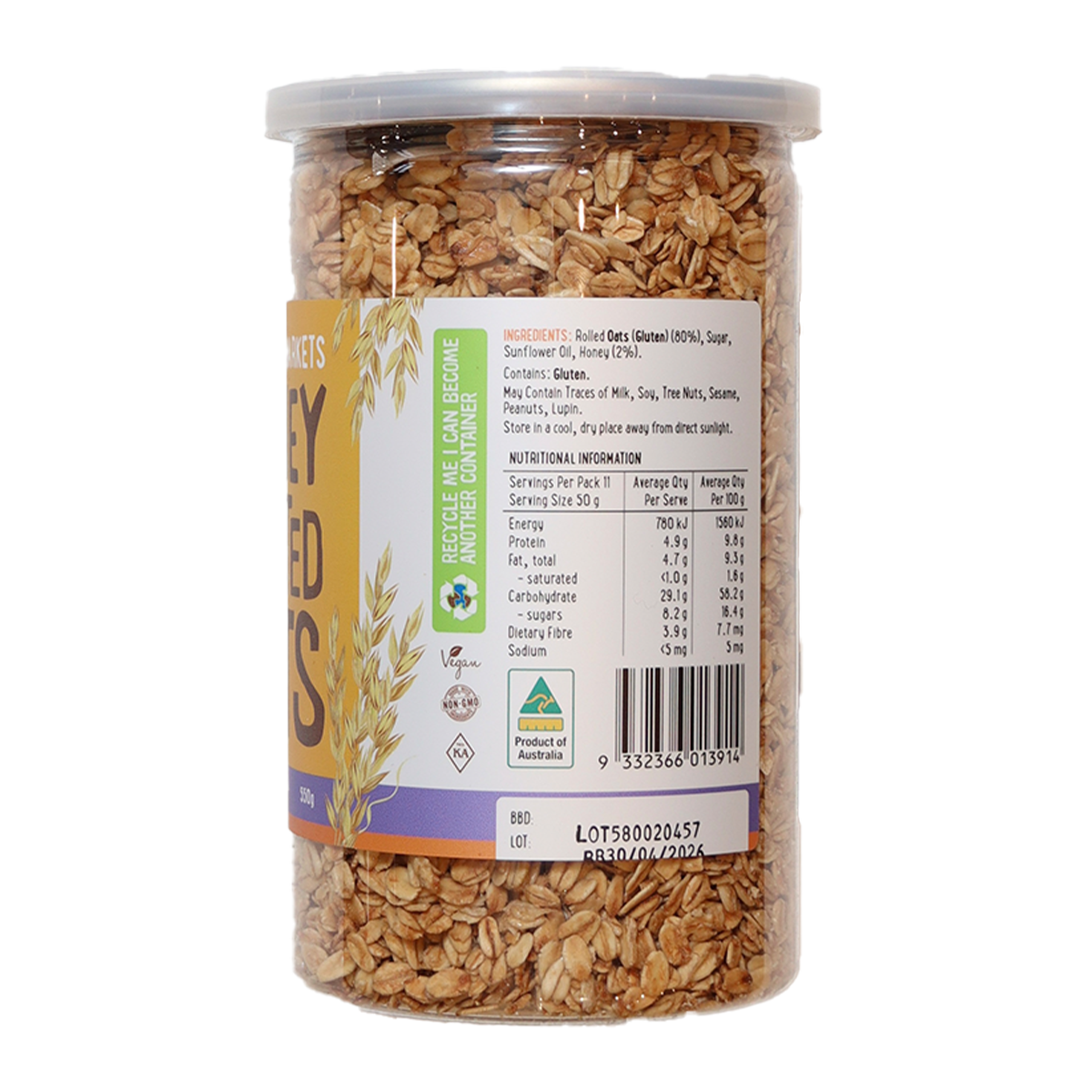 Enjoy the delicious crunch of Harris Farm Honey Toasted Oats 550g, a wholesome breakfast option packed with natural sweetness and fiber. Start your day right with this nutritious and satisfying cereal that will keep you energized and full until lunchtime. Perfect for those looking for a tasty and healthy way to kickstart their mornings.