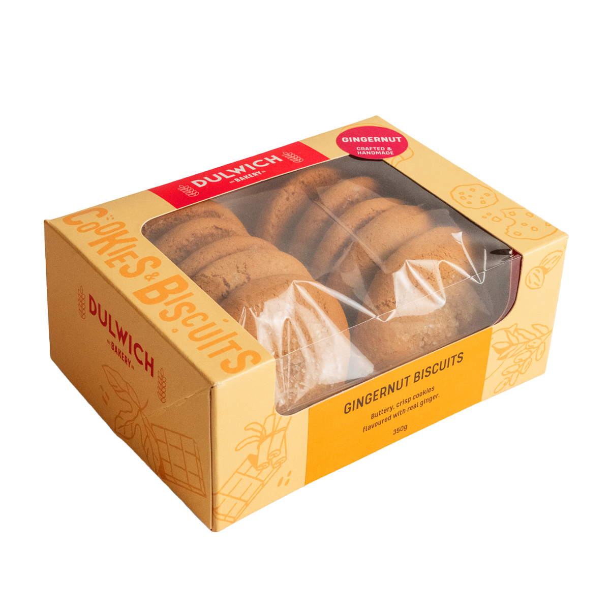 Indulge in the rich, spicy flavors of our Dulwich Bakery Gingernut Biscuits. Made with the finest ingredients, these 350g biscuits are perfect for satisfying your sweet cravings. Enjoy a delightful treat that will leave you craving for more.