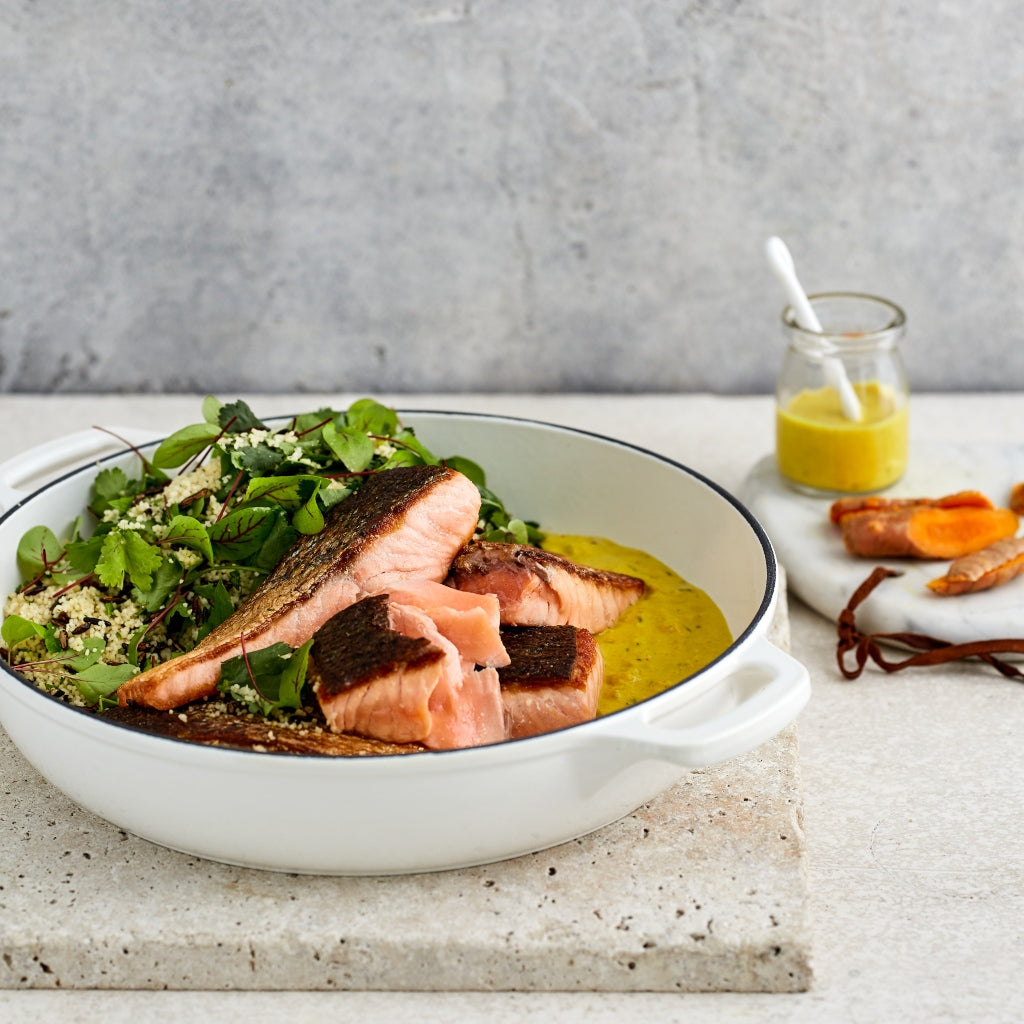 Turmeric Salmon with Wild Rice and Couscous Salad%}