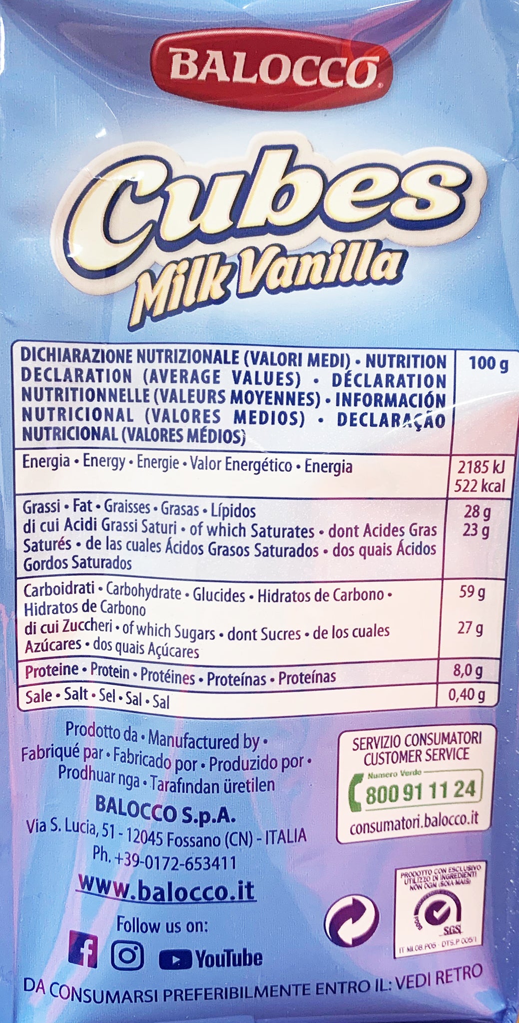 Balocco Wafers Cubes Milk Vanilla