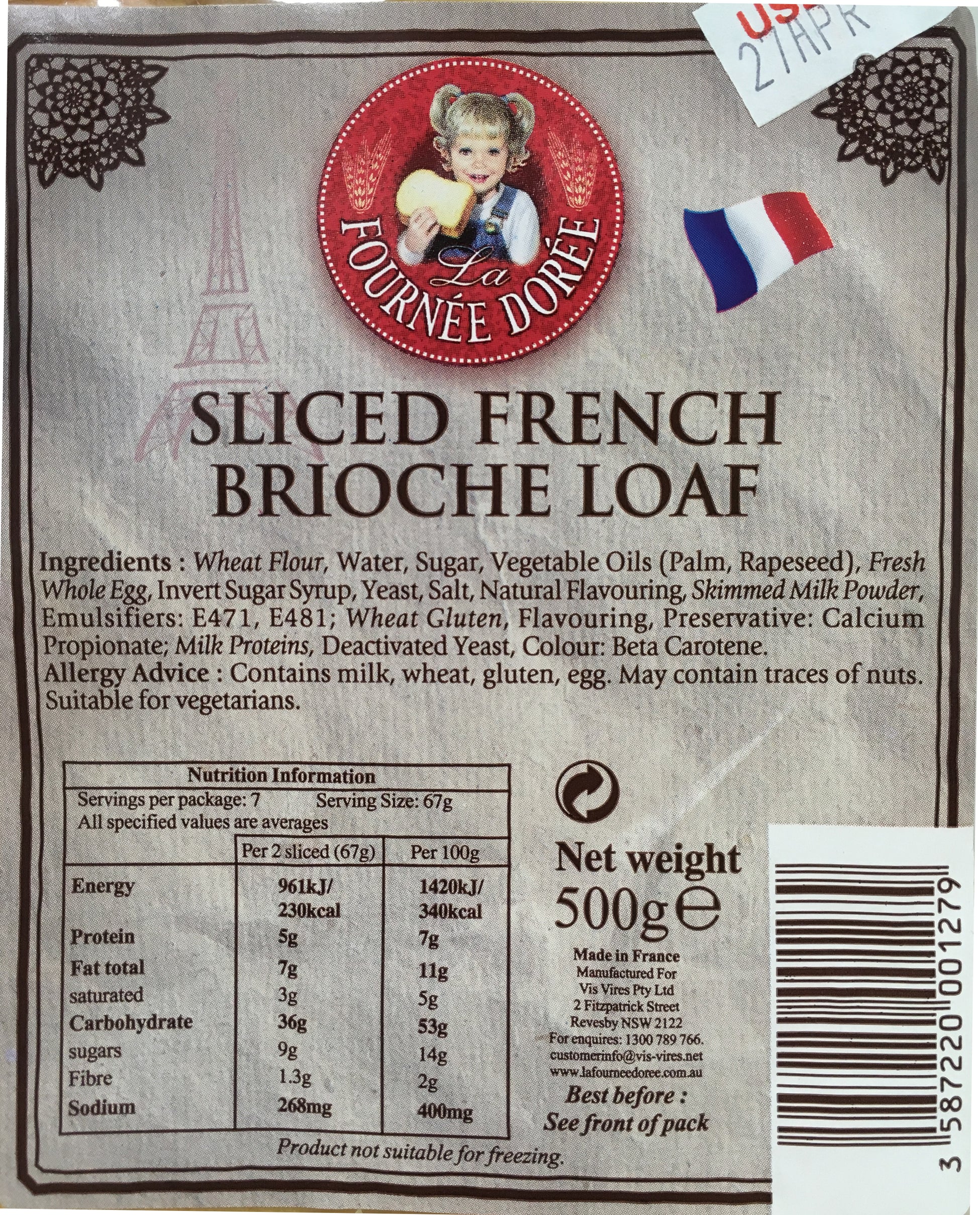 La Fournee Doree - Bread Sliced French Brioche - Loaf (500g)