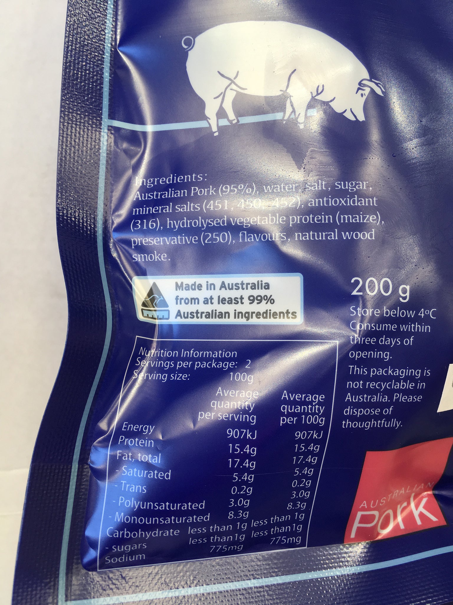 Bacon - Maple Cured Streaky (200g) Challenger Smallgoods