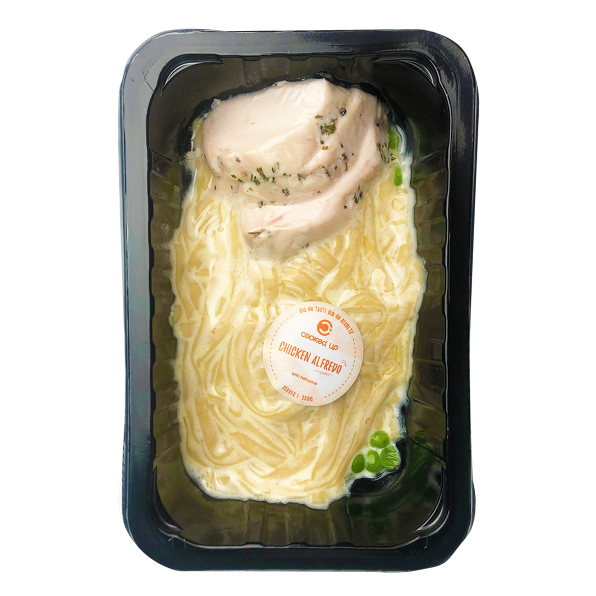 Savor the rich flavors of our Cooked Up Chicken Alfredo Meal 330g - a convenient and delicious dinner option that will satisfy your cravings in minutes. Indulge in tender chicken, creamy Alfredo sauce, and al dente pasta, all in one easy-to-prepare package. Perfect for busy nights or whenever you need a quick and tasty meal solution. Order now and enjoy a gourmet dining experience at home!