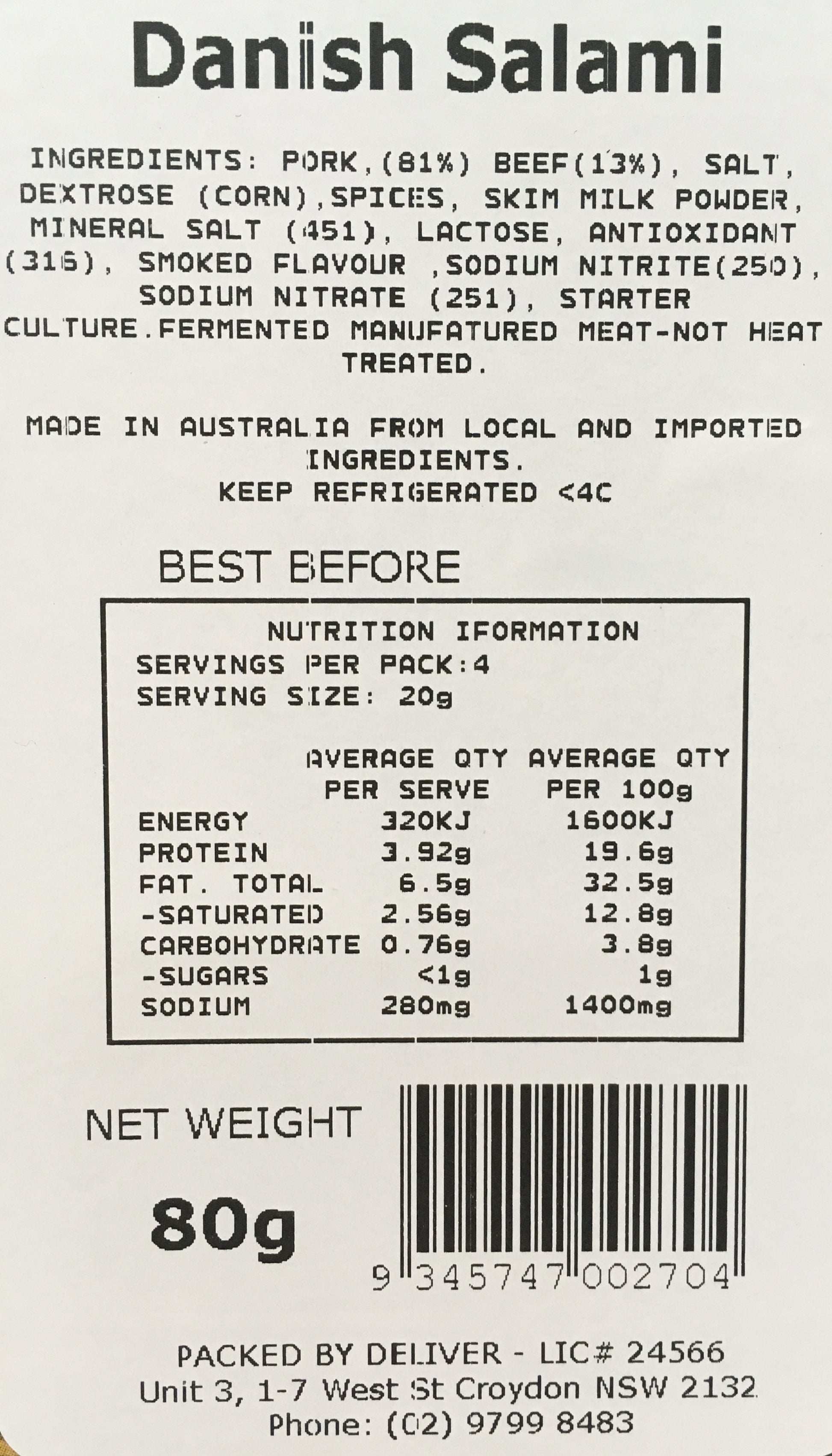 Deli - Danish Salami Sliced (80g) The Little Deli