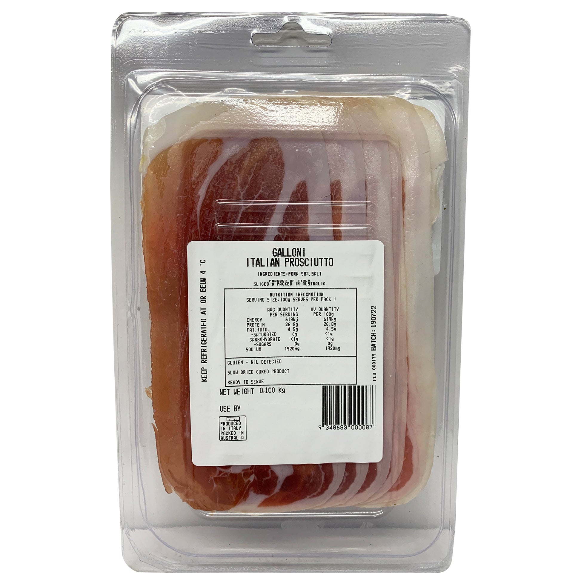 Galloni Prosciutto 100g: Indulge in premium Italian cured meat, expertly crafted for exquisite taste and quality. Elevate your charcuterie board or antipasto platter with this savory, melt-in-your-mouth delicacy. Perfect for adding a touch of luxury to any meal or snack. Experience the authentic flavors of Italy with Galloni Prosciutto.