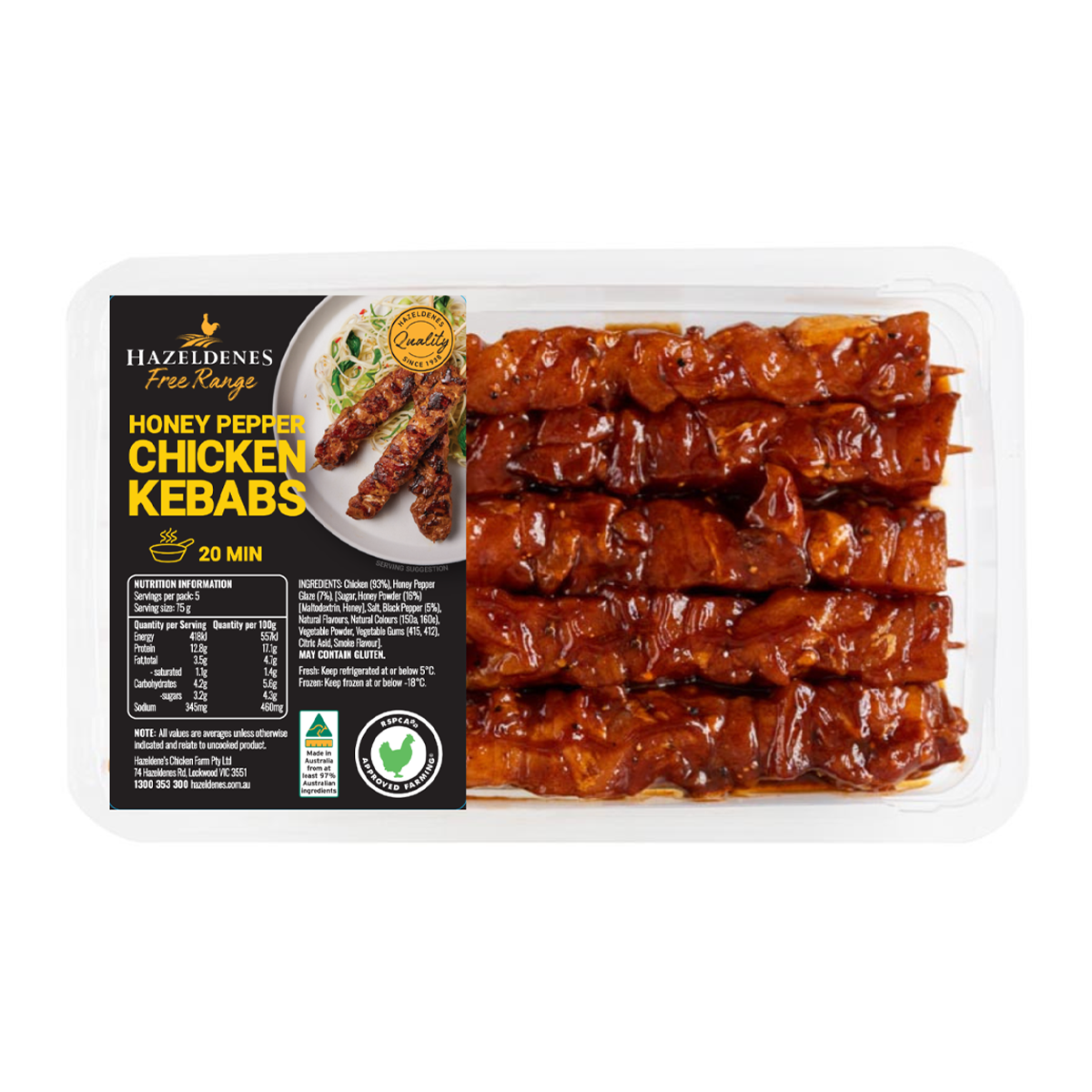 Hazeldenes Free Range Chicken Kebabs Honey Pepper