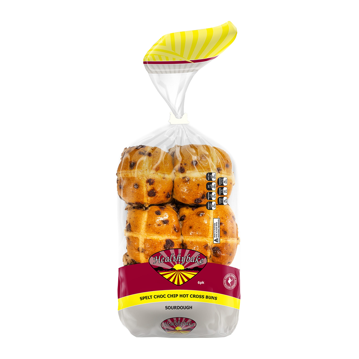 Healthy Bake Spelt Chocolate Chip Hot Cross Buns 500g