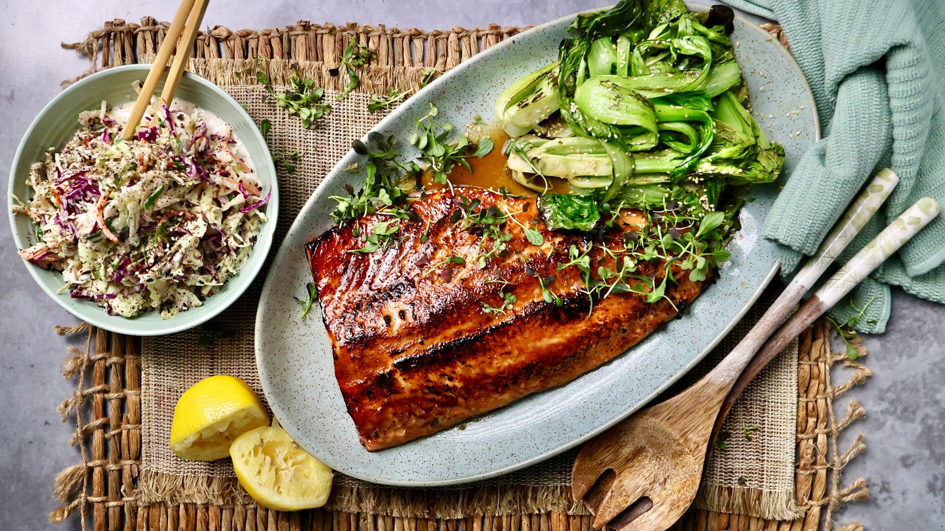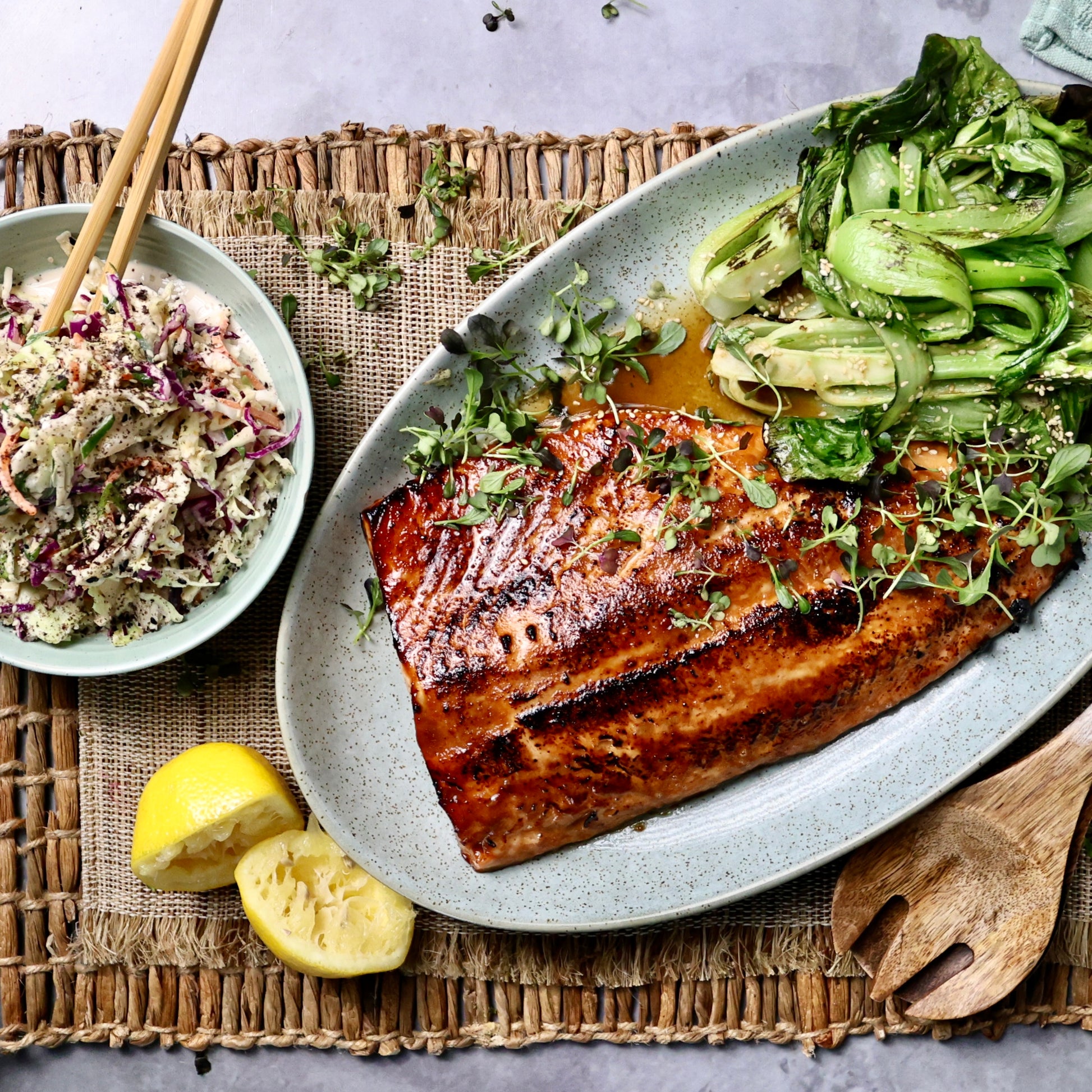 Honey and Miso Baked Salmon with Wasabi Slaw