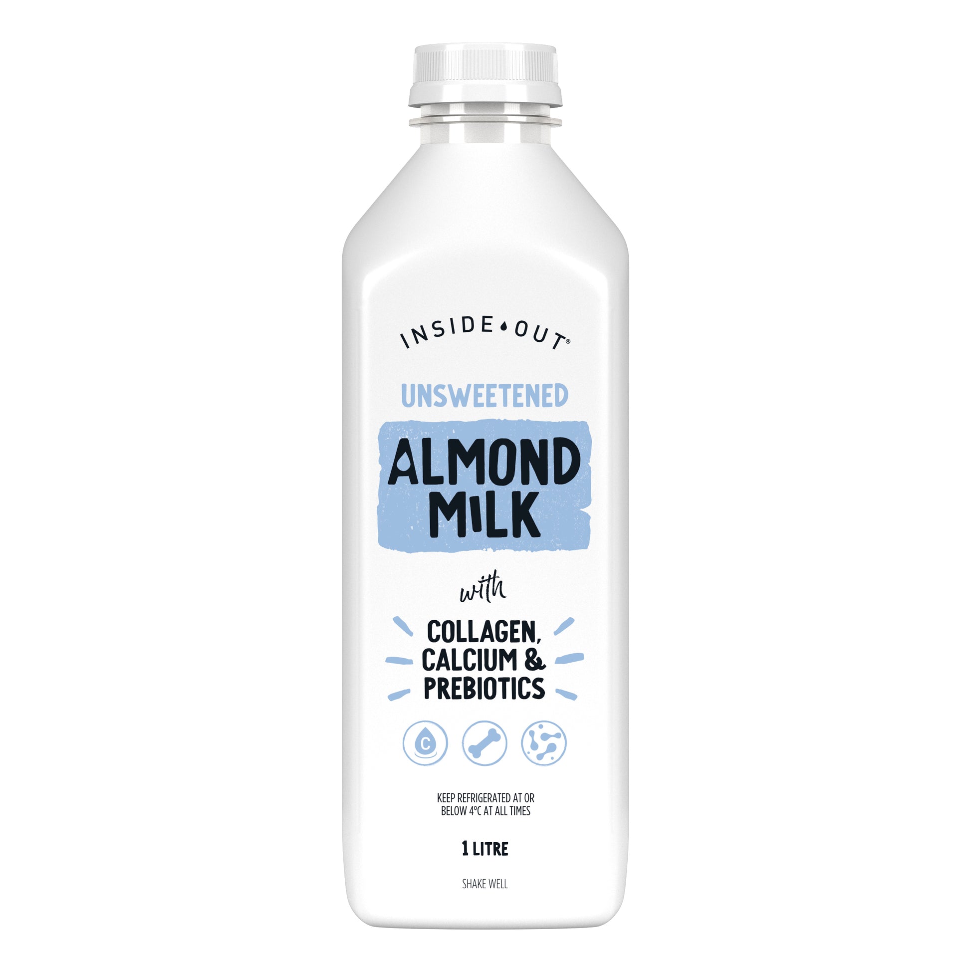 Inside Out Collagen Almond Milk 1L: Boost your skin's natural radiance with our collagen-infused almond milk. Packed with essential nutrients, this dairy-free beverage supports healthy skin from the inside out. Enjoy the delicious taste while nourishing your body with every sip. Try it today and glow from within!