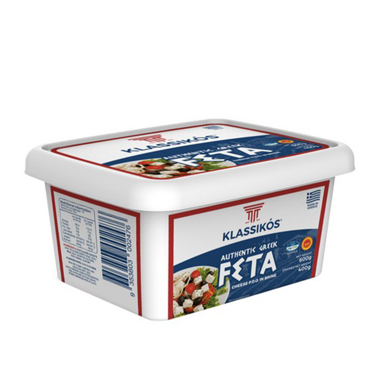 Klassikos Feta Cheese 400g: Elevate your dishes with our premium quality feta cheese. Made from the finest ingredients, our creamy and tangy feta adds a rich and savory flavor to salads, pastas, and more. Perfect for those looking to enhance their culinary creations with authentic Mediterranean taste.