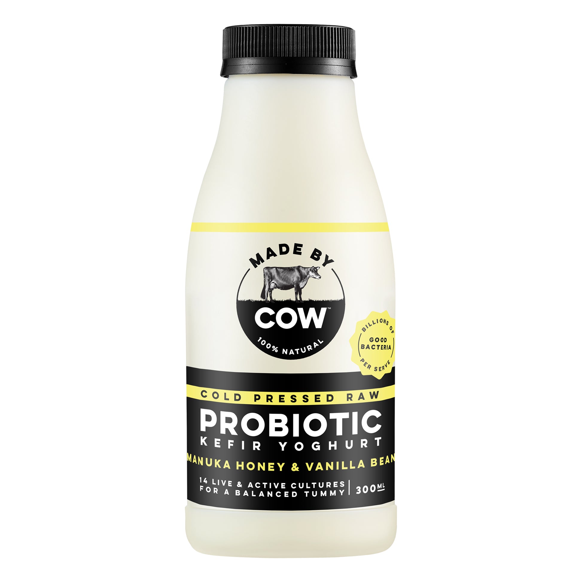 Made by Cow - Kefir Yoghurt Probiotic - Manuka Honey and Vanilla Bean (300mL)