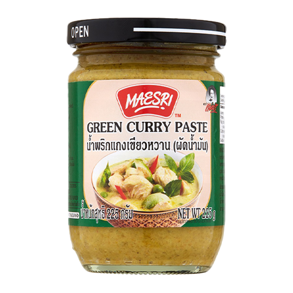 In a pot, bring 200 ml of coconut milk to a boil. Add half a jar (113 g) of Maesri Green Curry Paste and stir until it returns to a boil.