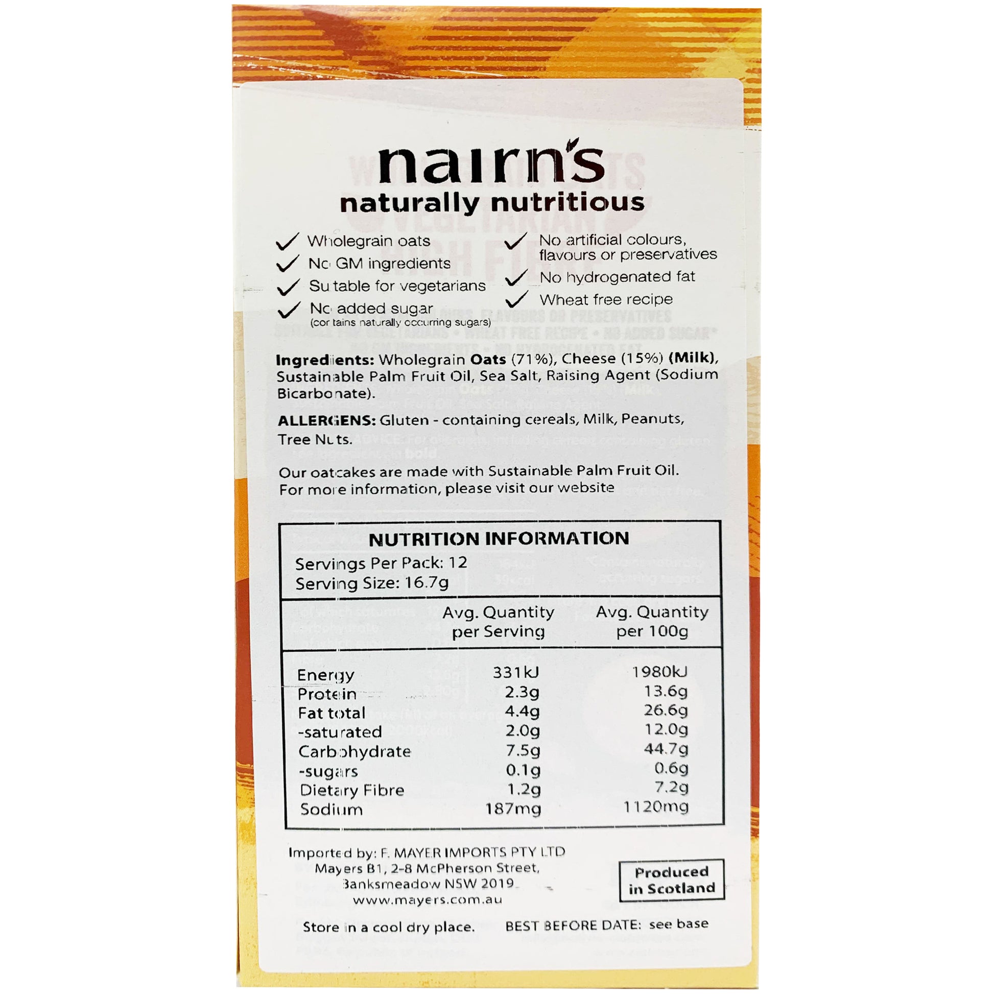 Nairn's Cheese Oatcakes 200g: Deliciously cheesy and wholesome oatcakes for a satisfying snack or meal accompaniment. Packed with fiber and flavor, these oatcakes are perfect for a quick and nutritious bite on the go. Enjoy the goodness of wholegrain oats and real cheese in every bite.