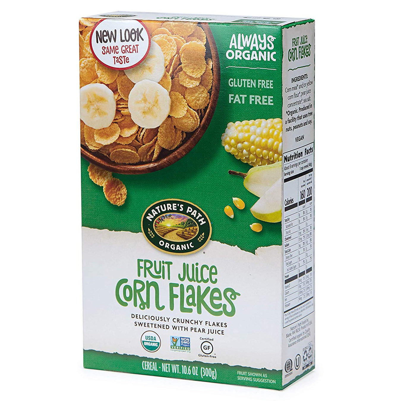 Nature's Path Organic Fruit Juice Corn Flakes 300g: Enjoy a delicious and nutritious breakfast with our organic corn flakes made with real fruit juice. Packed with vitamins and minerals, these crispy flakes are a wholesome way to start your day. Gluten-free and non-GMO, our cereal is a guilt-free choice for a healthy lifestyle.