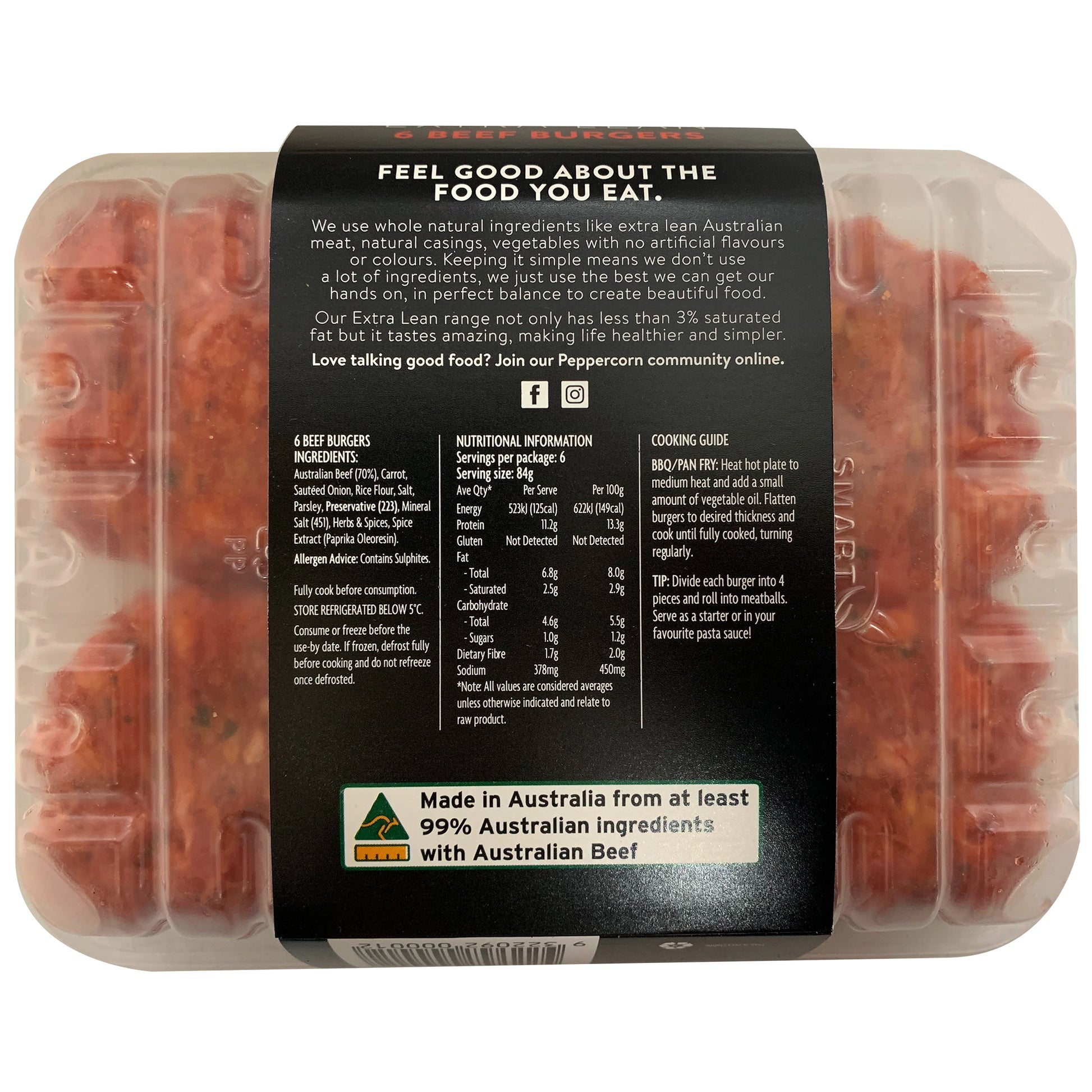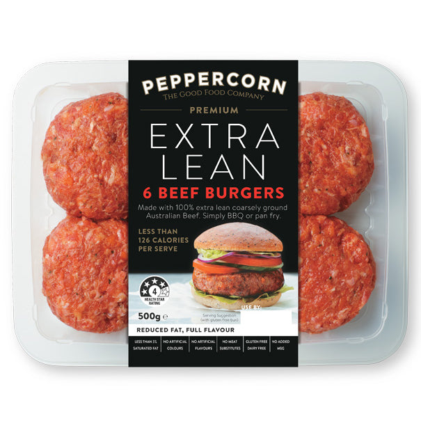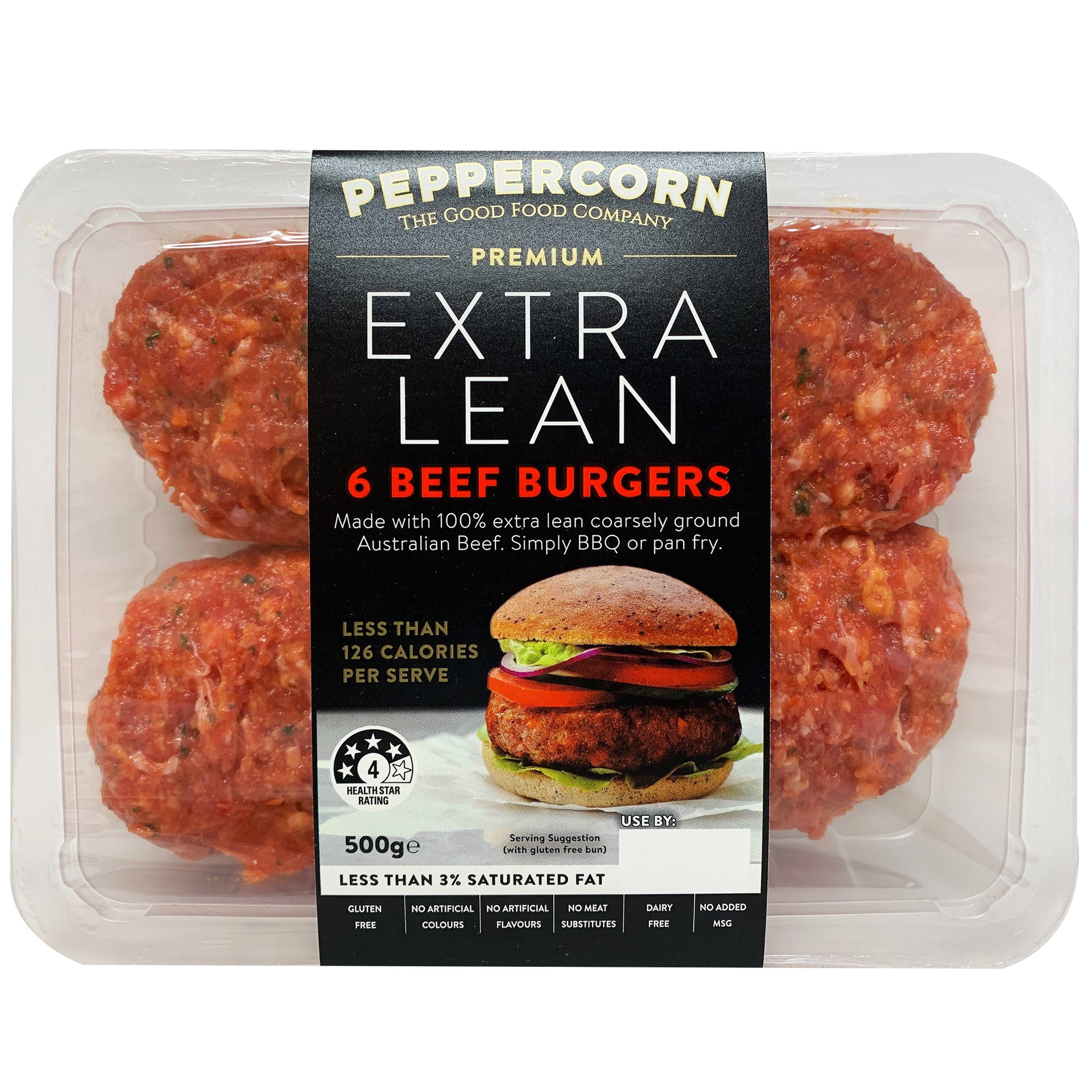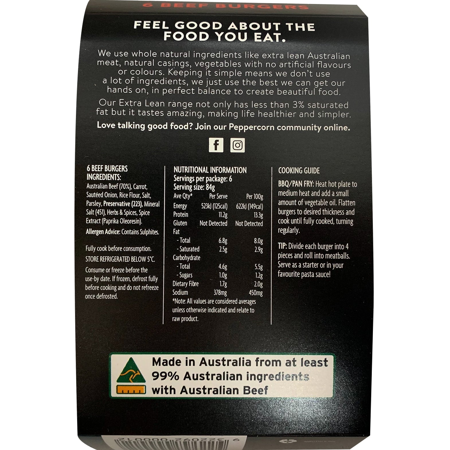 Peppercorn Extra Lean Beef Burgers x6 500g