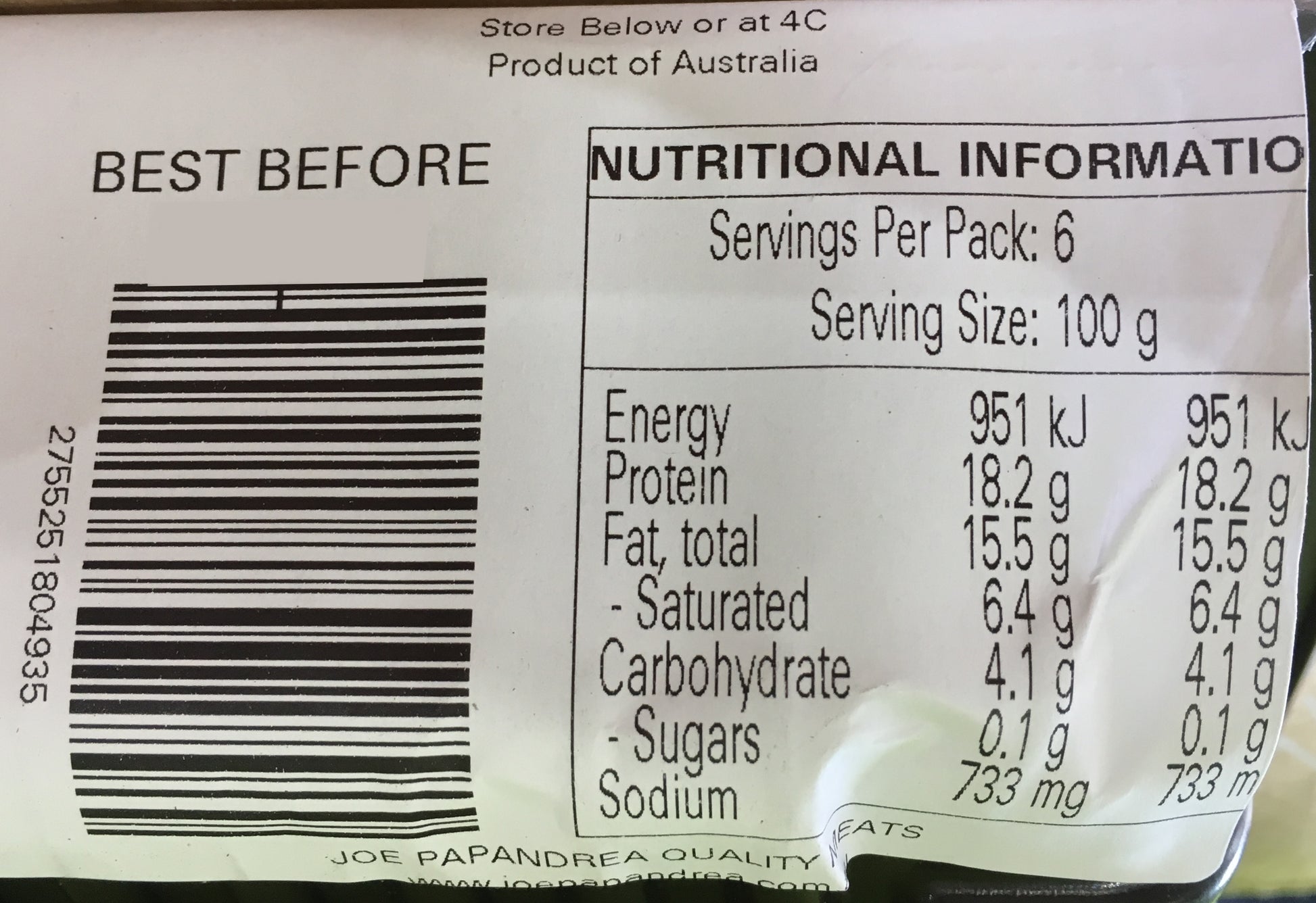 Joe Papandrea Thick BBQ Sausages 500-700g